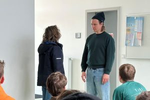 Stattdessen betrat Theaterpädagogin Theresa Meidinger den Raum und klärte auf: „Das war das Theaterstück Deine Helden – meine Träume.“ Erst in diesem Moment wurde vielen Schülerinnen und Schülern wirklich klar, dass sie Teil eines Theaterstücks geworden waren.
