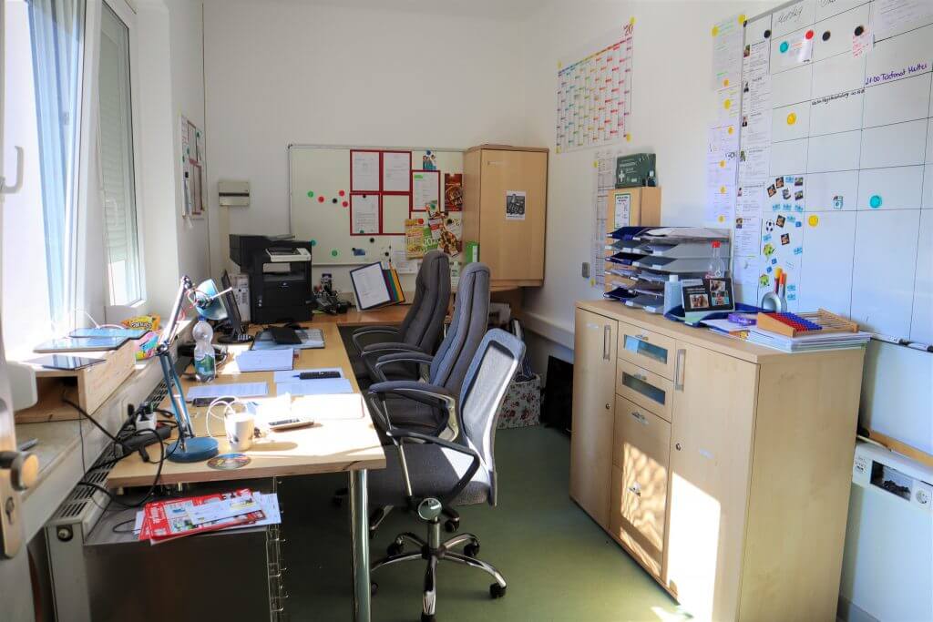 Natürlich zählen auch das Dienst- und das Nachbereitschaftszimmer für die Betreuer*innen zur Ausstattung unserer Wohngruppe.